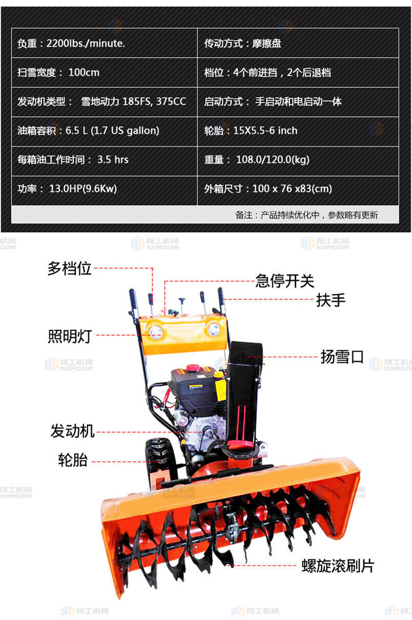 XG-100小型手扶自走清雪機(jī)掃雪機(jī)(黃色)