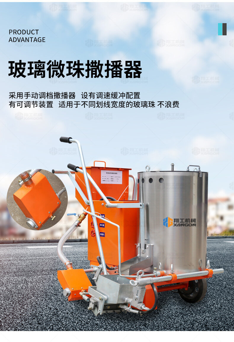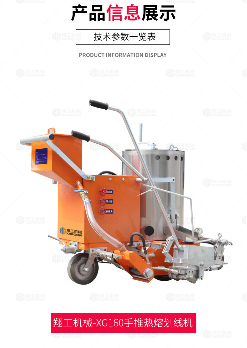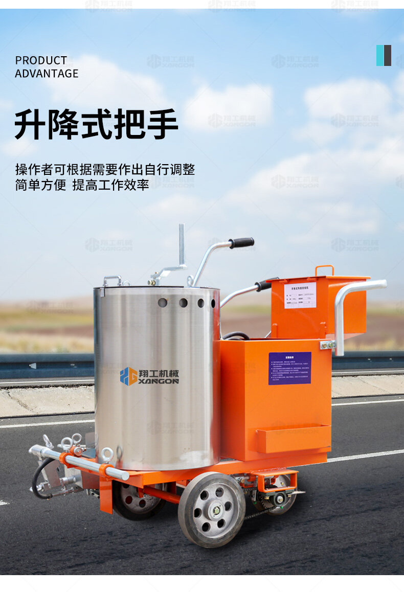 160手推熱熔劃線機(jī)采用普通鑄鐵劃線斗,同步離合玻璃微珠自動撒播器,具有結(jié)構(gòu)簡單、輕便、價優(yōu)、性能優(yōu)良等特點。