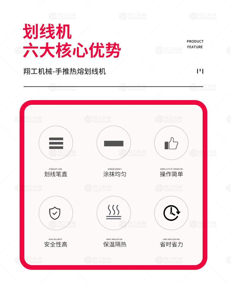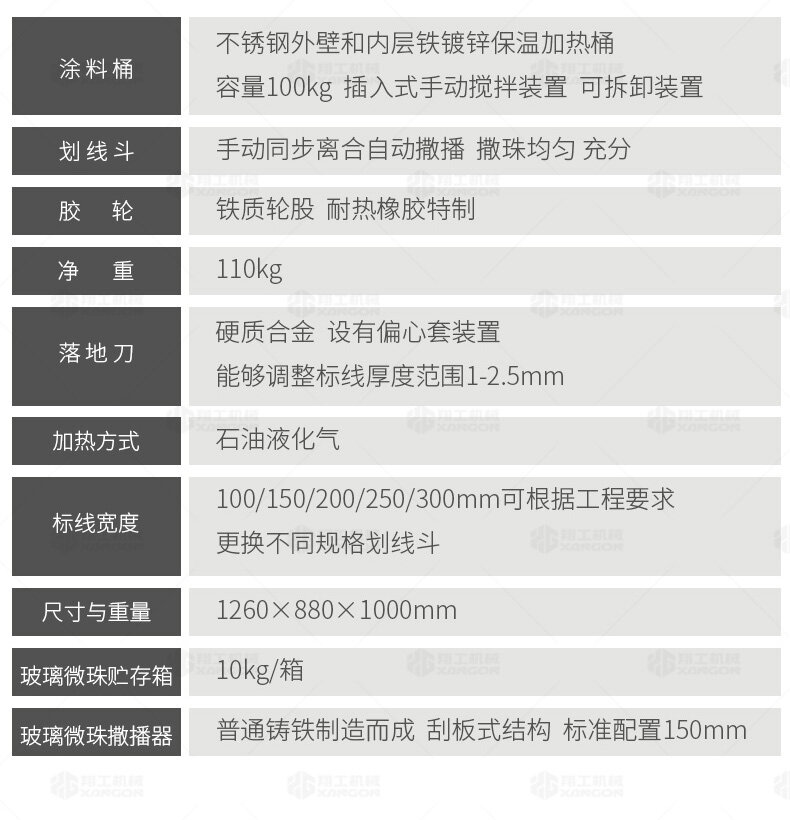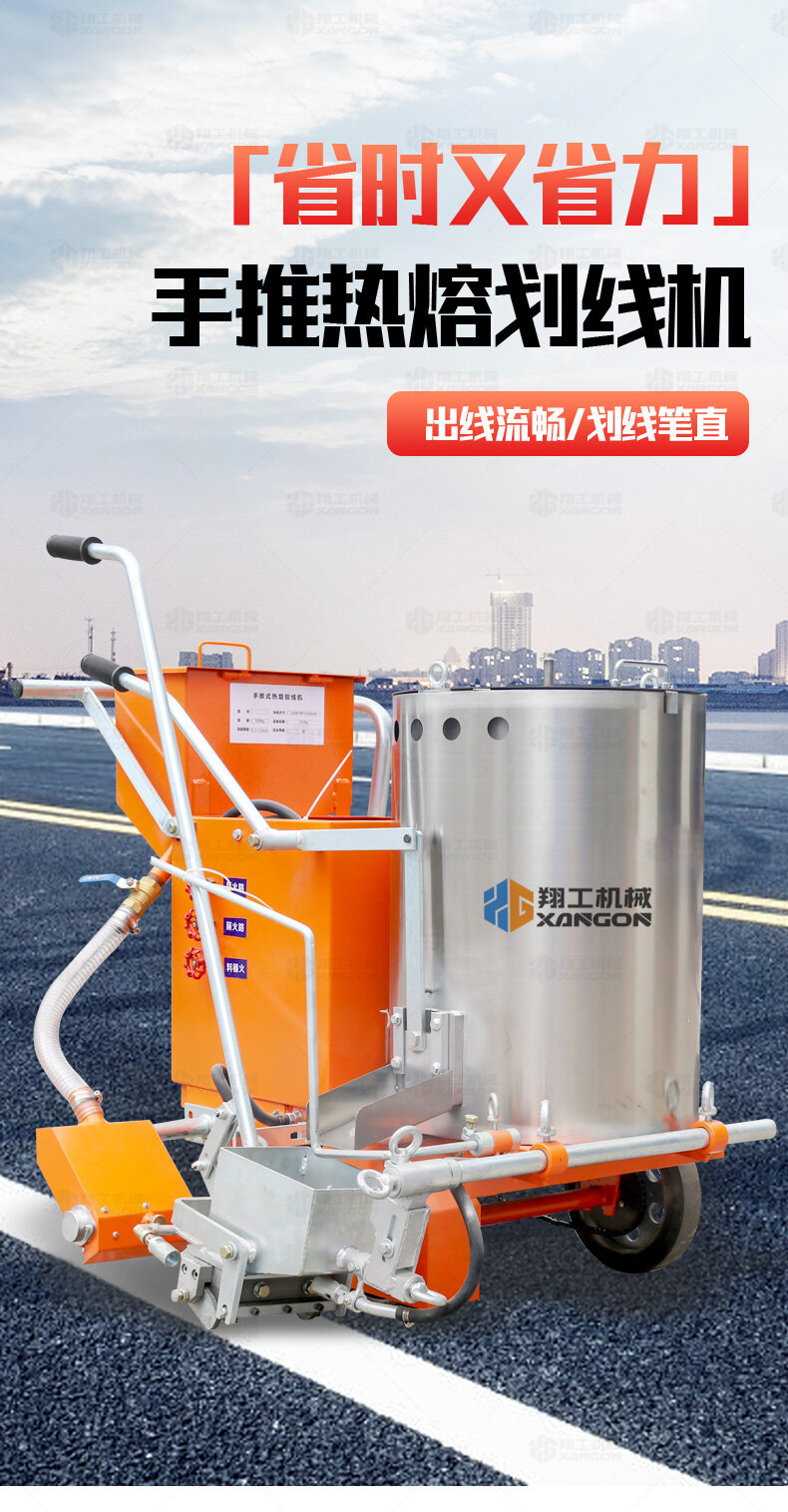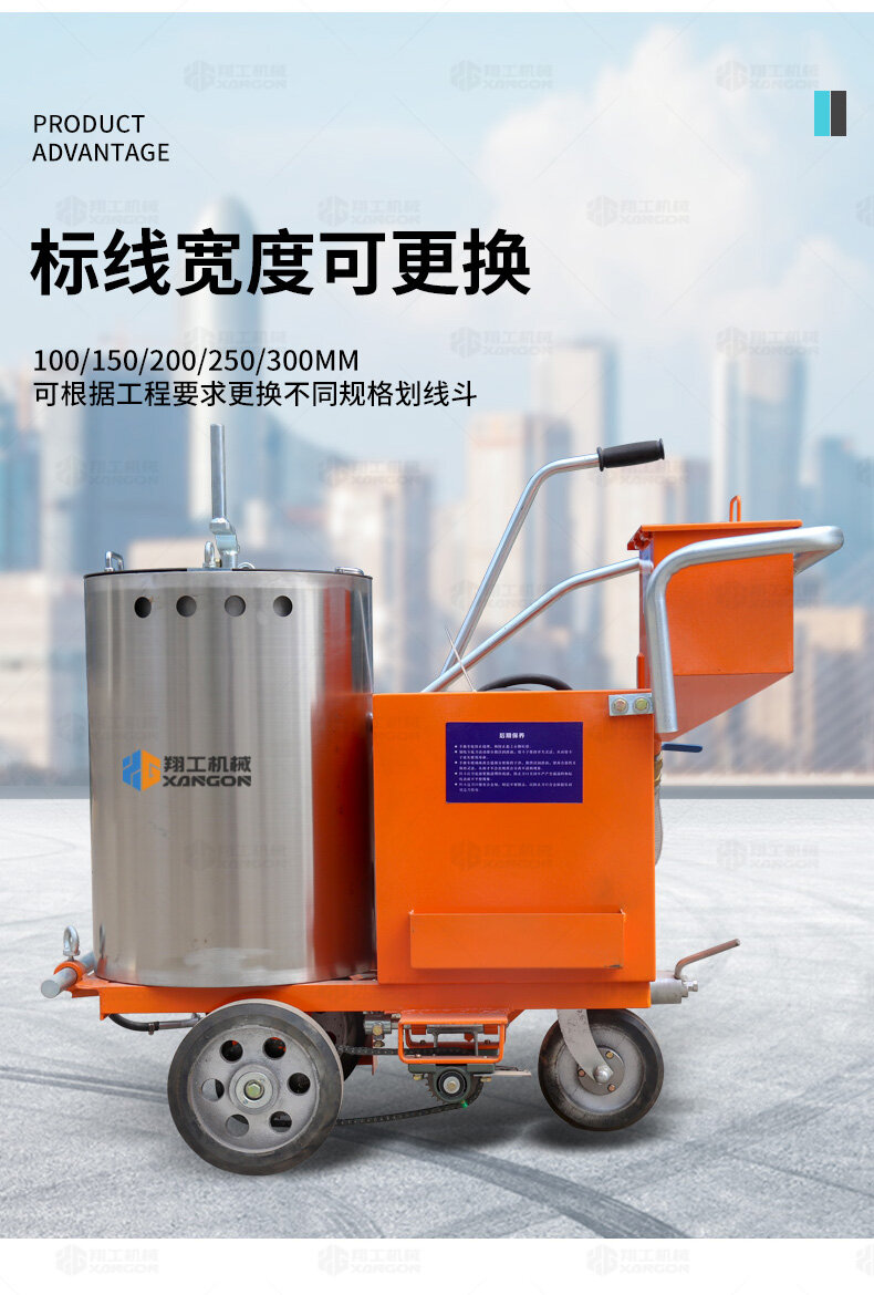 160手推熱熔劃線機(jī)采用普通鑄鐵劃線斗,同步離合玻璃微珠自動撒播器,具有結(jié)構(gòu)簡單、輕便、價優(yōu)、性能優(yōu)良等特點。
