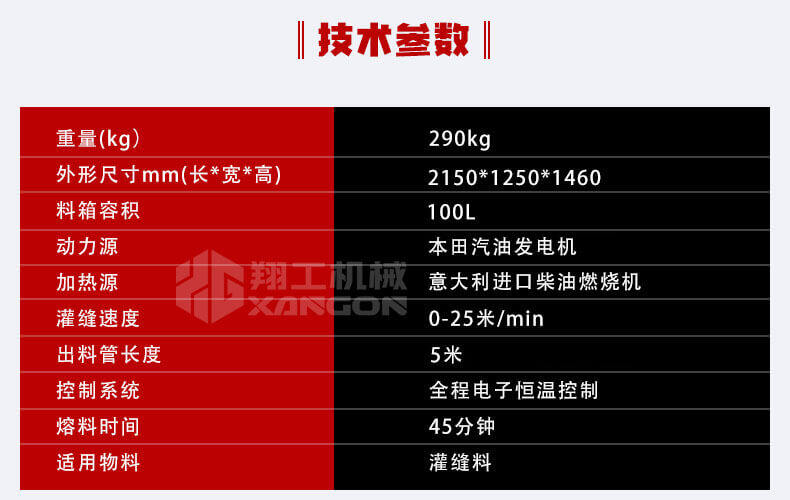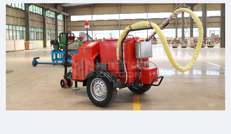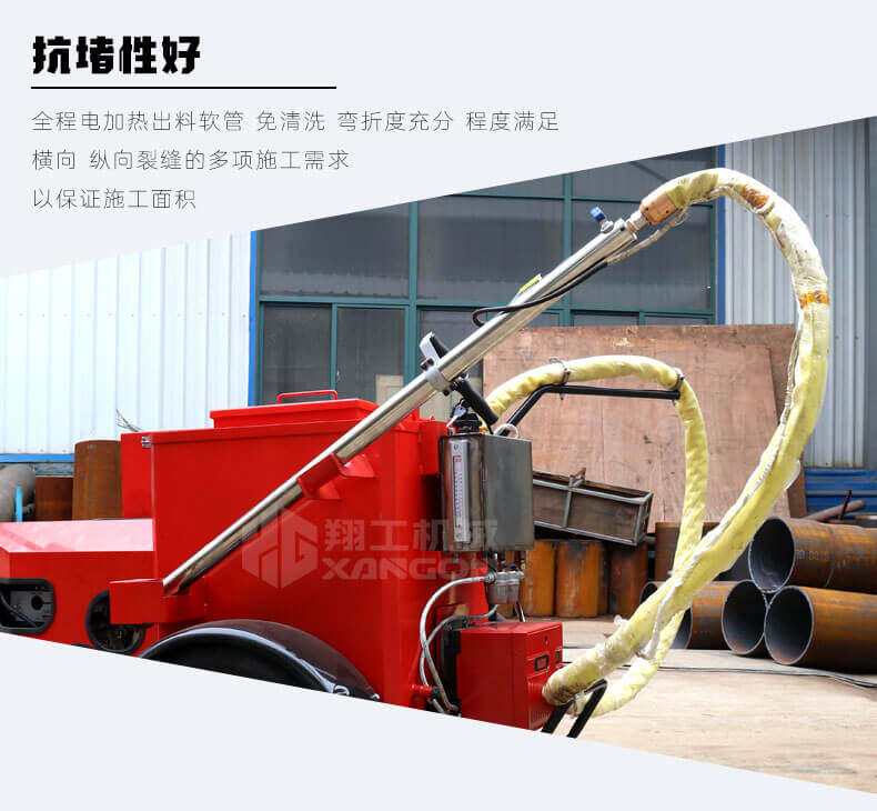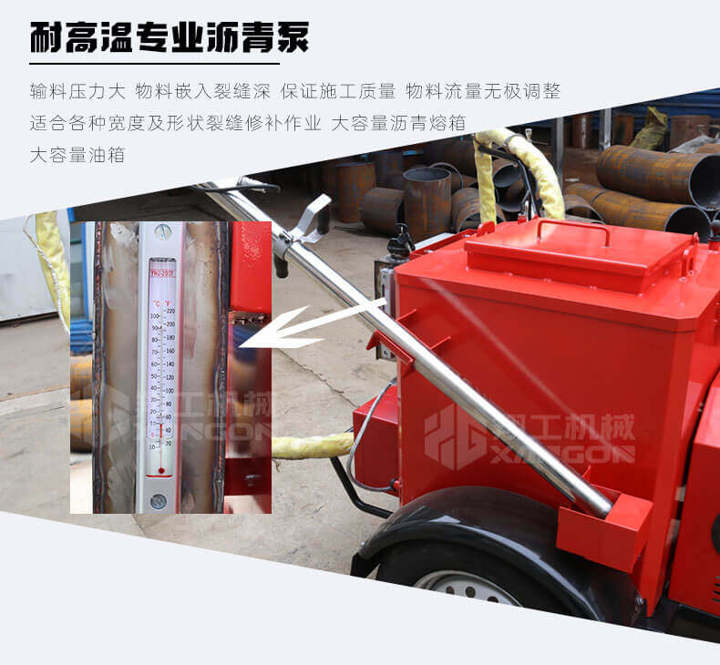 灌縫機(jī)主要有手推式和自行式手持灌縫管操作,采用進(jìn)口柴油燃燒器加熱。在工作時(shí)首先在料箱內(nèi)加入瀝青或灌縫膠,啟動發(fā)電機(jī)供電,依次間斷打開導(dǎo)熱油泵開關(guān),燃燒器開關(guān),出料管加熱開關(guān);