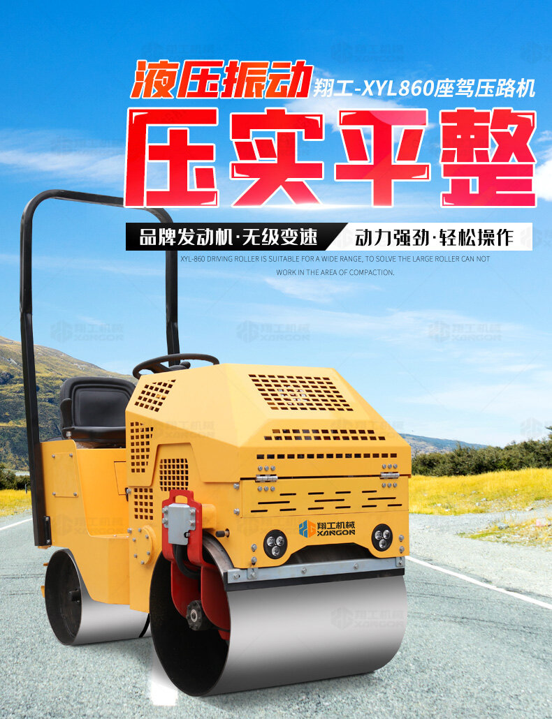 XYL-860座駕壓路機(jī)適用于各種溝槽沙土回填壓實(shí)、高層建筑地下室土方壓實(shí)、小區(qū)道路基礎(chǔ)壓實(shí)、各種草坪壓實(shí)、修補(bǔ)及各種小型工程的使用,解決了大型壓路機(jī)無法工作區(qū)域的壓實(shí)作業(yè)。