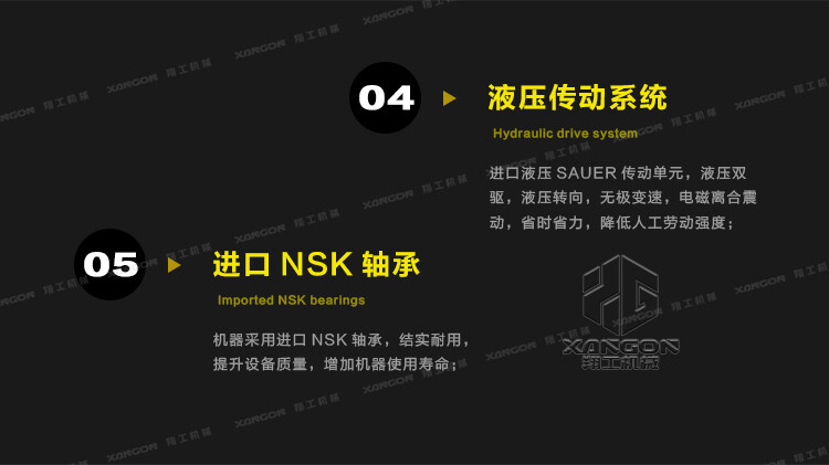 采用國際SAUER液壓傳動單元,無級變速,液壓轉向,換向方便;