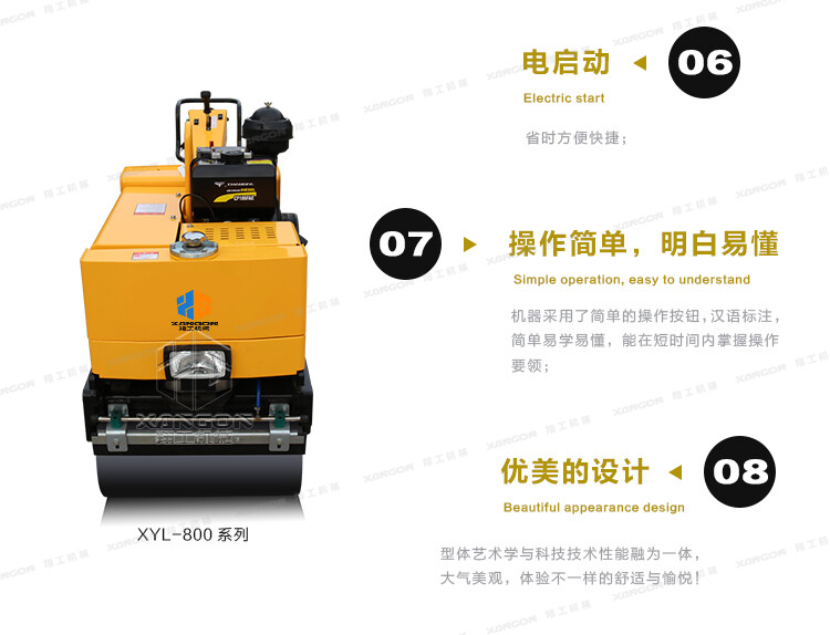 XYL-800C手扶全液壓壓路機(柴油)主要用于溝渠基礎,道路,體育場地的壓實整平,也可用于壓實瀝青表面的作業(yè)。
