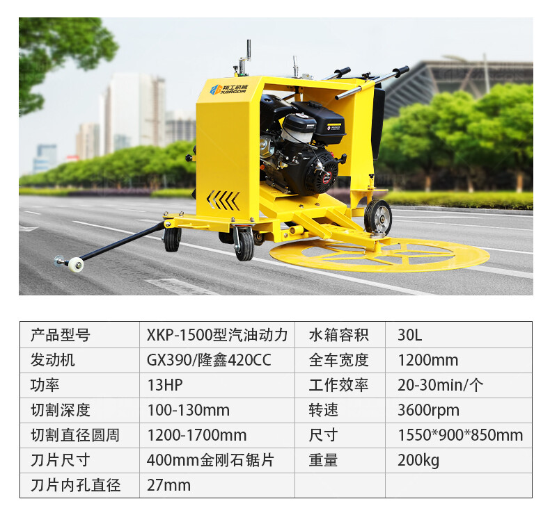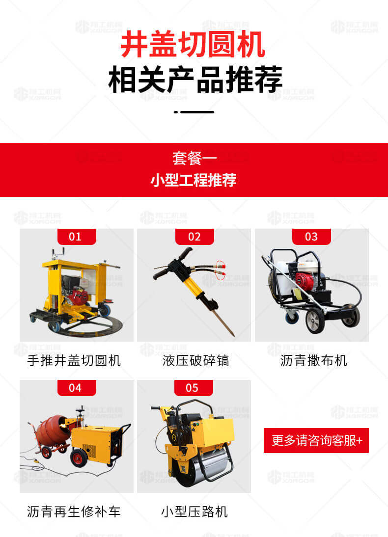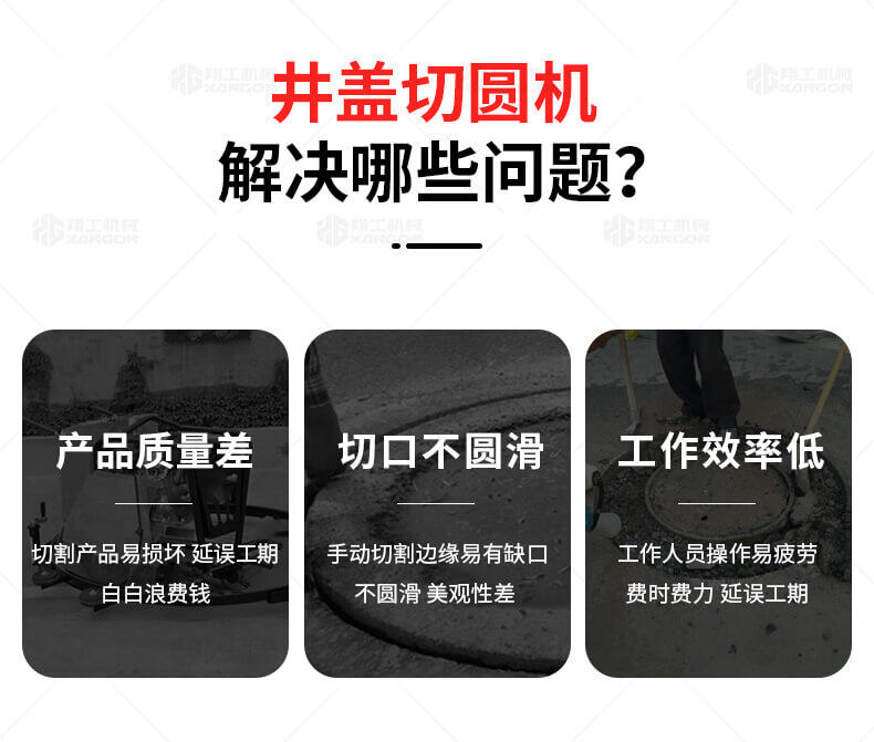 XG-1500型井蓋切割機(jī),專門用于對(duì)城市道路中機(jī)動(dòng)車道等井蓋周圍的水泥混凝土或?yàn)r青路面進(jìn)行圓形切割。為清楚井蓋周圍的破損路面提供分割區(qū)域,恢復(fù)后的地面美觀,延長(zhǎng)了路面的使用壽命。