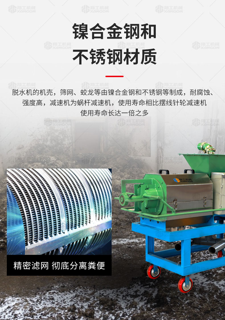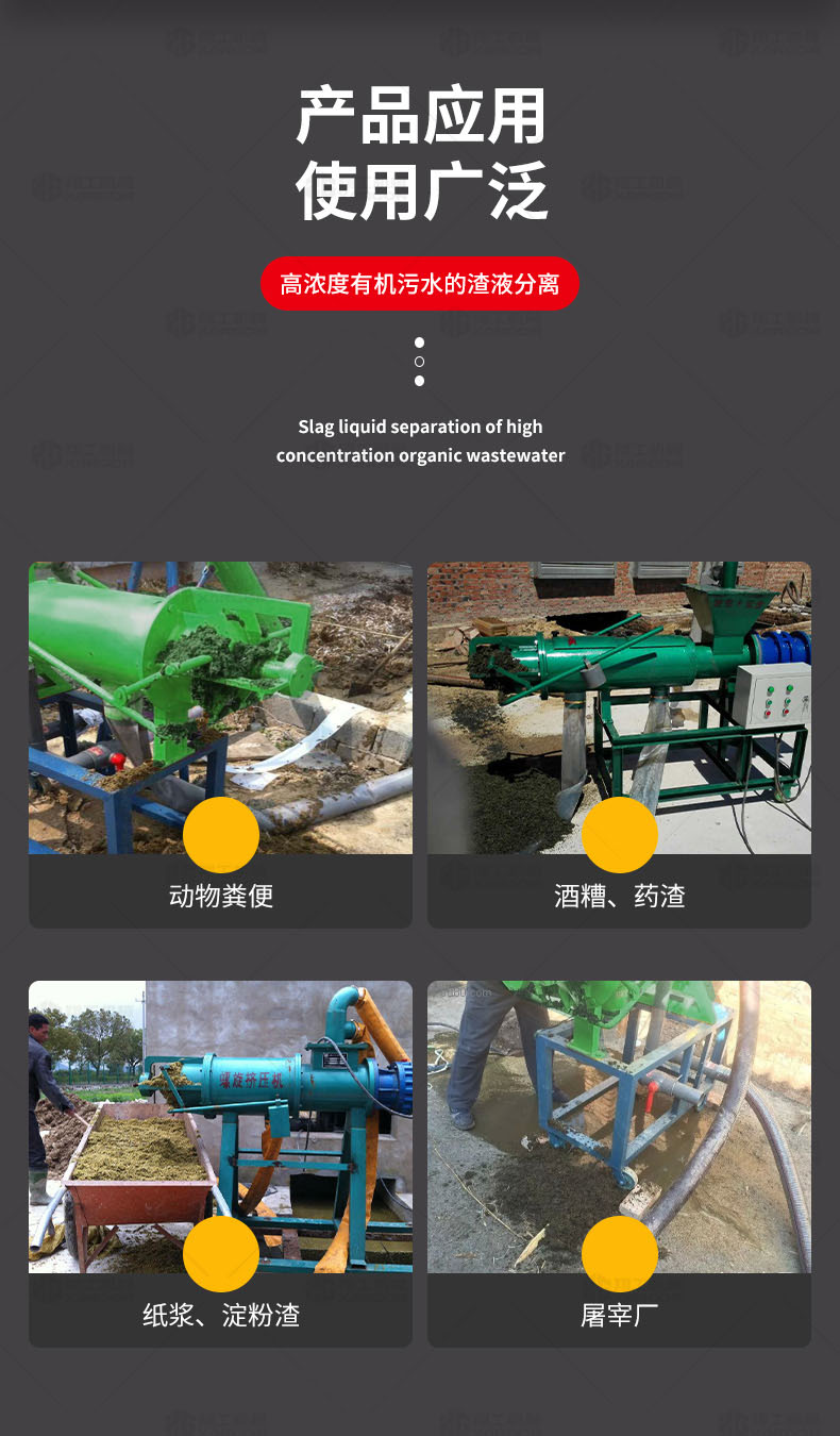 XGF系列固液分離機(jī)可廣泛做為雞、牛,馬及各類集約化養(yǎng)殖場對紙漿、動物糞便、酒糟、藥渣、淀粉渣、醬渣、屠宰廠等高濃度有機(jī)污水的渣液分離。
