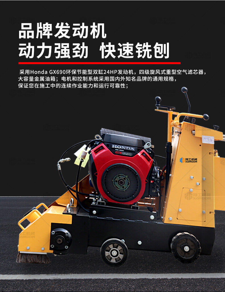 小型液壓銑刨機(jī)采用Honda GX690環(huán)保節(jié)能型雙缸24HP發(fā)動(dòng)機(jī),四級旋風(fēng)式重型空氣濾芯器,大容量金屬油箱;采用名優(yōu)電機(jī)和控制系統(tǒng),保證您在施工中的連續(xù)作業(yè)能力和運(yùn)行可靠性;