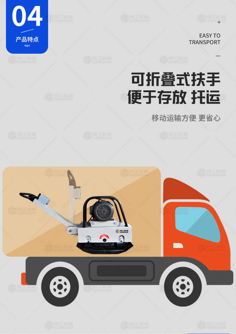 電動平板夯是一種理想的混凝土基礎面層及一般混凝土構件表面振實的工具,也是一種理想的夯實土壤、砂土、碎石的機械。