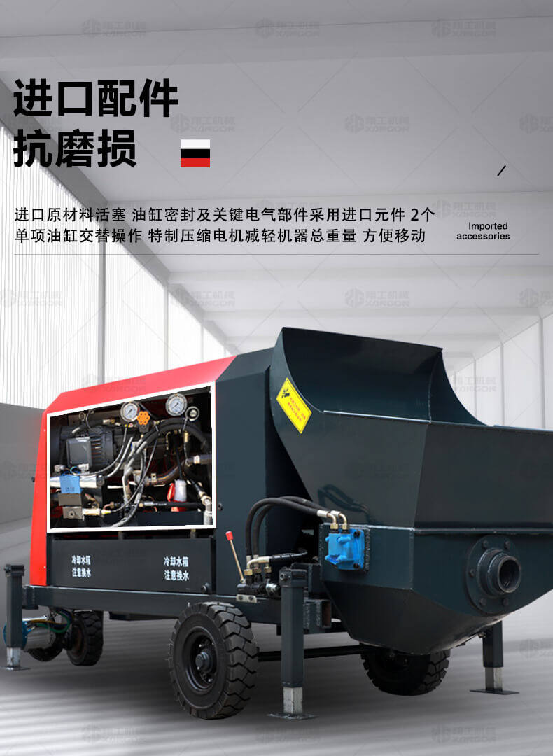 這款7.5KW型澆筑泵帶有自動攪拌功能,性能可靠,設(shè)備各個結(jié)構(gòu)制造科學(xué),電機(jī)功率大、性能穩(wěn)定、施工效率高等優(yōu)勢,使用電動澆筑泵大大提高了施工效率,降低勞動強(qiáng)度,節(jié)約人工,被廣泛應(yīng)用。是工程施工的好幫手。