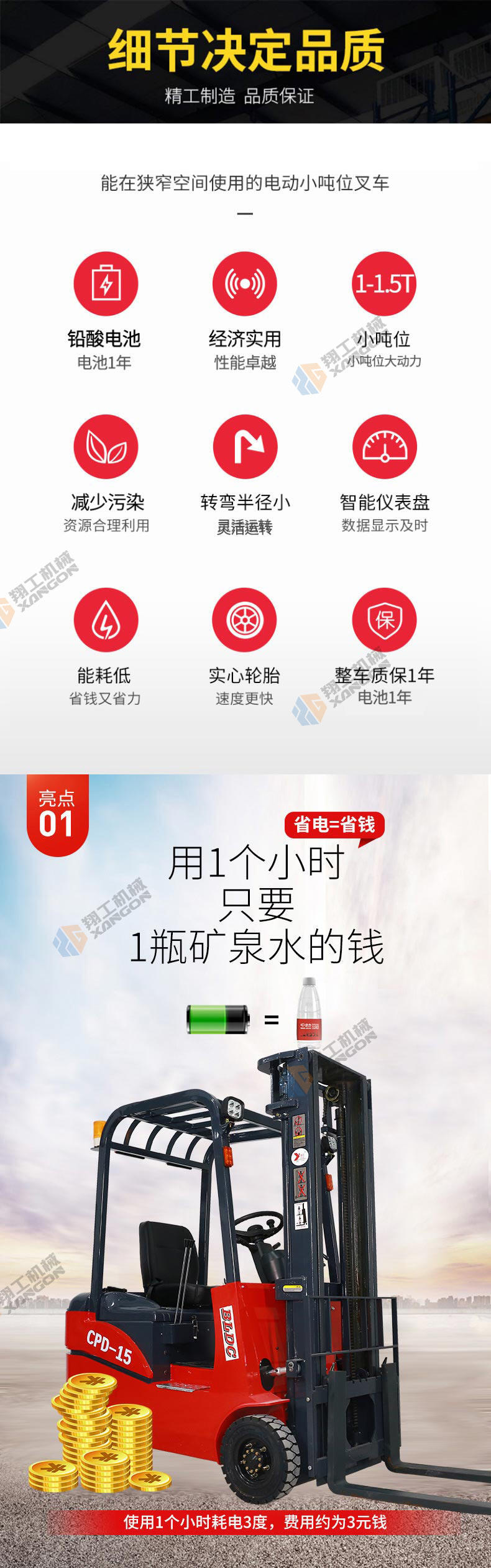 三支點CPD1.5噸前驅(qū)電動升降液壓電動叉車