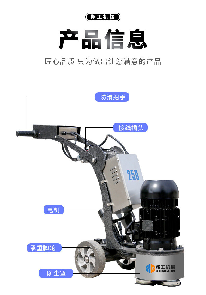 250拋光修邊機(jī)也叫混凝土地坪邊角機(jī),適合邊角、小面積打磨,機(jī)動靈活,使用方便,下面帶大家來了解一下這款產(chǎn)品詳情。