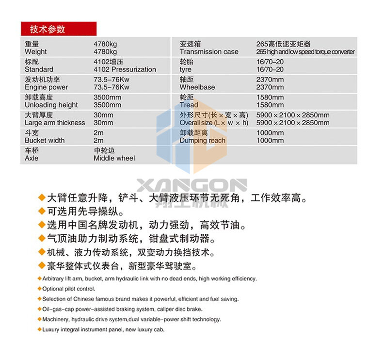 主要用于鏟裝土壤、砂石、石灰、煤炭等散狀物料,也可對(duì)礦石、硬土等作輕度鏟挖作業(yè)。換裝不同的輔助工作裝置還可進(jìn)行推土、起重和其他物料如木材的裝卸作業(yè)。在道路、特別是在高等級(jí)公路施工中,裝載機(jī)用于路基工程的填挖、瀝青混合料和水泥混凝土料場(chǎng)的集料與裝料等作業(yè)。