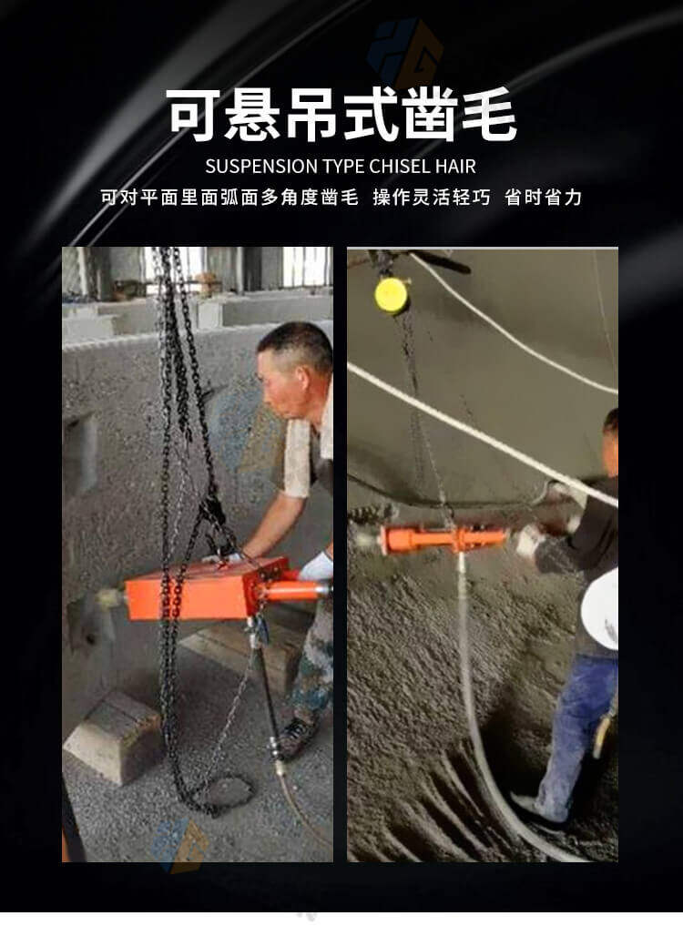 手持式懸掛鑿毛機(jī)機(jī)身有吊環(huán),鑿墻面的話吊起來(lái)使用,對(duì)平面、立面、弧形等多角度進(jìn)行鑿毛作業(yè),打擊力大、鑿深自如,應(yīng)用領(lǐng)域非常廣泛,又省力還方便。 主要適用于水庫(kù)、大壩滲漏,險(xiǎn)橋危橋、電廠、隧洞、高速公路、鐵路橋面以及箱梁混凝土等眾多領(lǐng)域 。主要是對(duì)混凝土表面進(jìn)行剔鑿,建筑物墻體、地面以及市政工程混凝土面層剔除、修補(bǔ)、翻新、加固等。