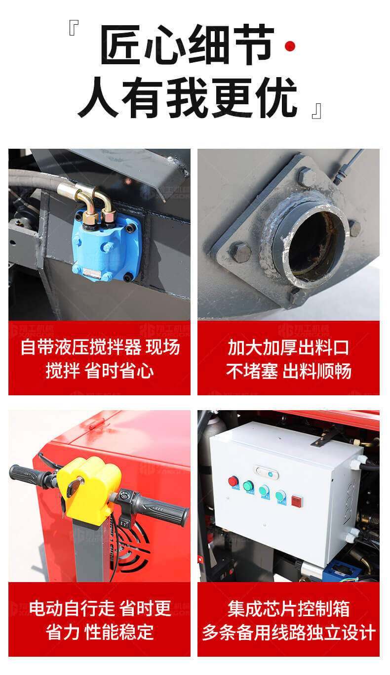 本產(chǎn)品為電動(dòng)行走臥式造型混凝土輸送泵,料斗帶攪拌功能,可泵送機(jī)制砂;風(fēng)冷散熱,散熱效果好;集成芯片控制箱,多條備用線路獨(dú)立設(shè)計(jì),不用擔(dān)心控制系統(tǒng)問(wèn)題;操作部件采用24v 安全感應(yīng)電壓,安全可靠;S 彎采用兩個(gè)單向油缸,速度均勻。