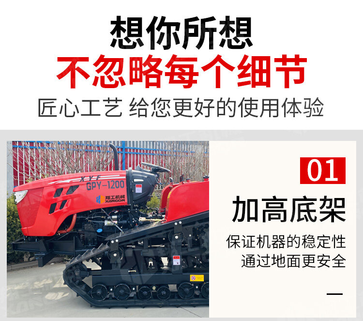 本款120馬力履帶旋耕機,動力強勁,作業(yè)高效。采用重型履帶底盤,接地壓力小,通過性與穩(wěn)定性極佳,輕松應對水田、泥濘等復雜工況。其深耕效果好,碎土率高,能一次性完成旋耕、碎土作業(yè),是規(guī)?;r田耕整地的理想選擇。